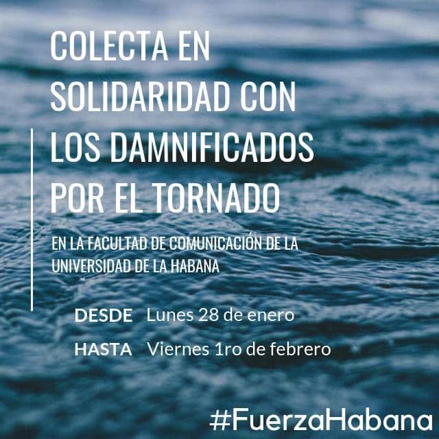 Entre las primeras instituciones estatales en anunciar su iniciativa para ayudar a los damnificados estuvo la Facultad de Comunicación de la Universidad de La Habana, a través de la profesora Rocío Baró Guerra.