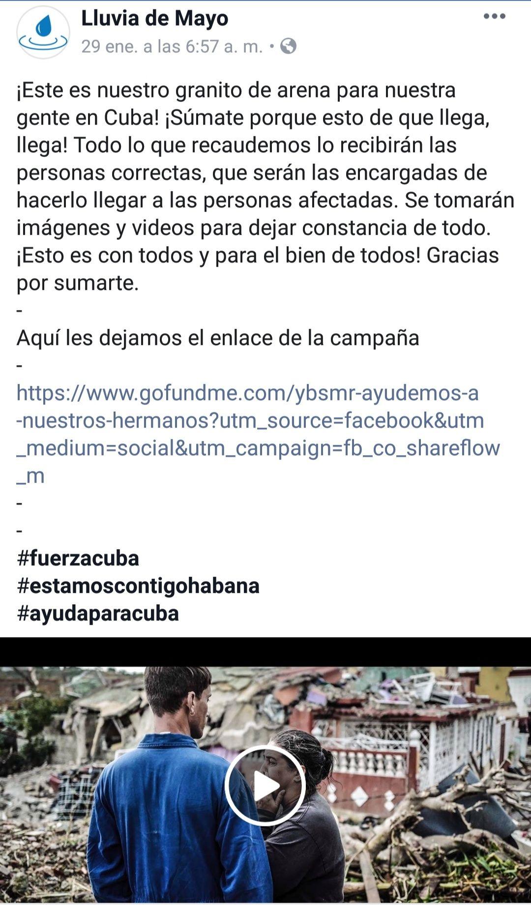 A través de Facebook, Jeison López y Celia Mendoza Suárez iniciaron una recaudación de fondos bajo el nombre Ayuda a tu gente Cuba.