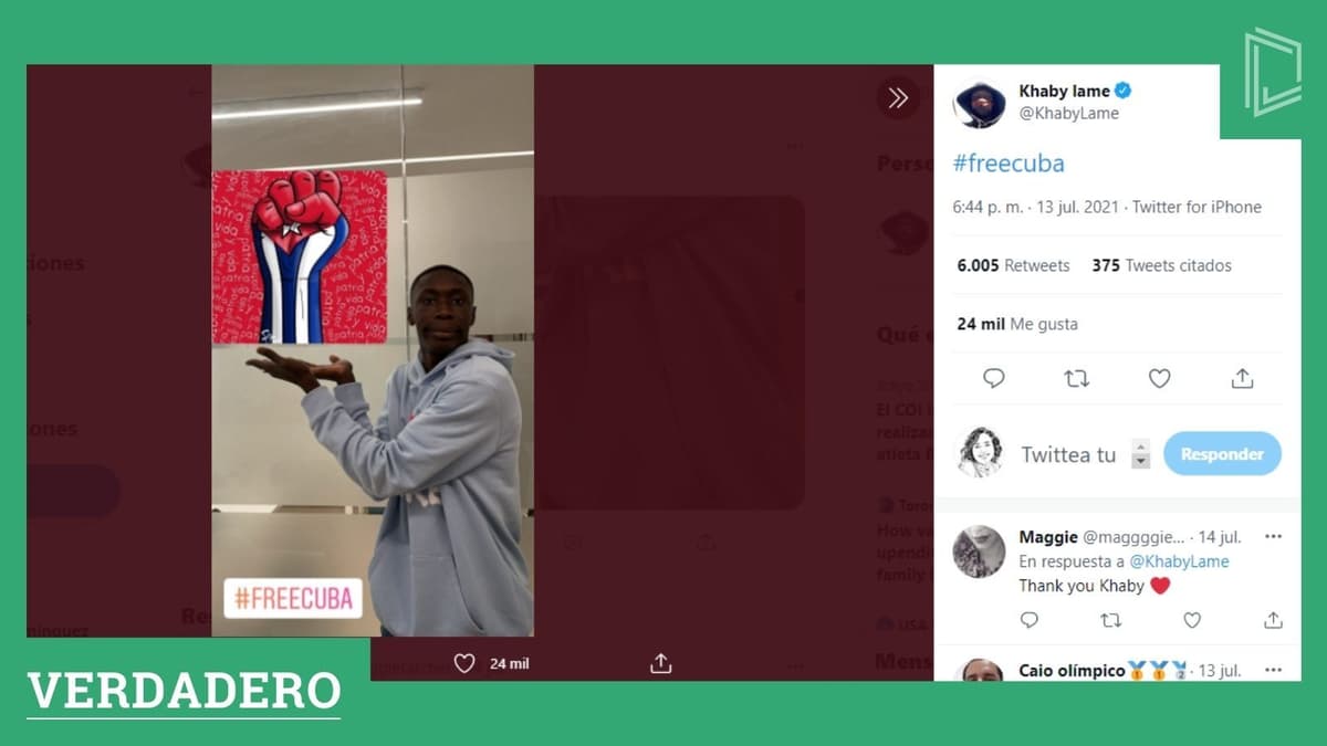 Khaby Lame, el famoso tiktoker senegalés, residente en Italia, publicó en su cuenta en Twitter el 13 de julio una imagen en referencia a Cuba: una ilustración del venezolano Franklin Paz que acompañó con el mensaje: #freecuba #SOSCuba. Este mensaje fue compartido por muchos usuarios y cuestionado por otros.