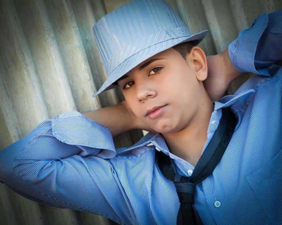 Con traje, con ropa de futbolista, y hasta con “un short de un tío mío, que era mecánico, lleno completamente de grasa”; estuvo Cristhian durante un día haciendo las tomas fueras del estudio. Él y la familia escogieron la ropa.