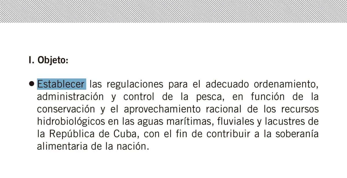 El texto regula nuevas modalidades de pesca, anuncia la aprobación de la figura del pescador por cuenta propia y la destrucción de las embarcaciones de la flota pesquera estatal que no cumplen con los estándares para un desarrollo sustentable de la pesca.