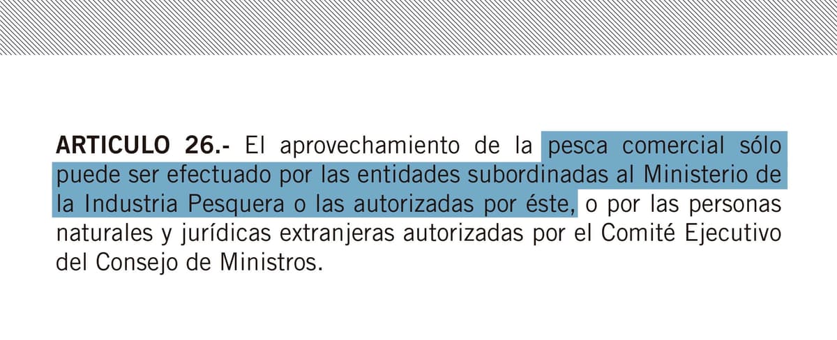La norma apunta al control de la pesca como solución para la ausencia de productos del mar en el mercado cubano. Implícitamente, busca controlar fundamentalmente a los pescadores privados, sobrevivientes de la crisis del sector pesquero en el país.