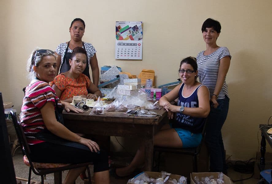 D’ Brujas Jabón cumplió más de cuatro años haciendo jabones a mano. Hoy esos productos son comercializados en el bazar de la Avenida del Puerto en la Habana Vieja. La licencia con la que operan es de artesanía. Sandra Aldama, su creadora, tuvo que explicar detalladamente ante el Ministerio de Trabajo y Seguridad Social su proyecto: quería hacer jabones artesanales con ingredientes naturales. Además, tuvo que adquirir otro permiso –el de Productor, Elaborador y Vendedor de Artículos del Hogar– para poder ofertar objetos complementarios, como una cesta, una caja.