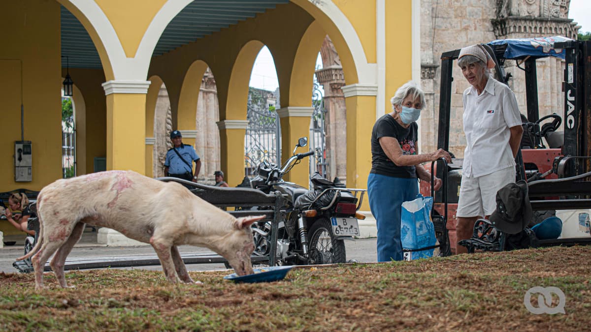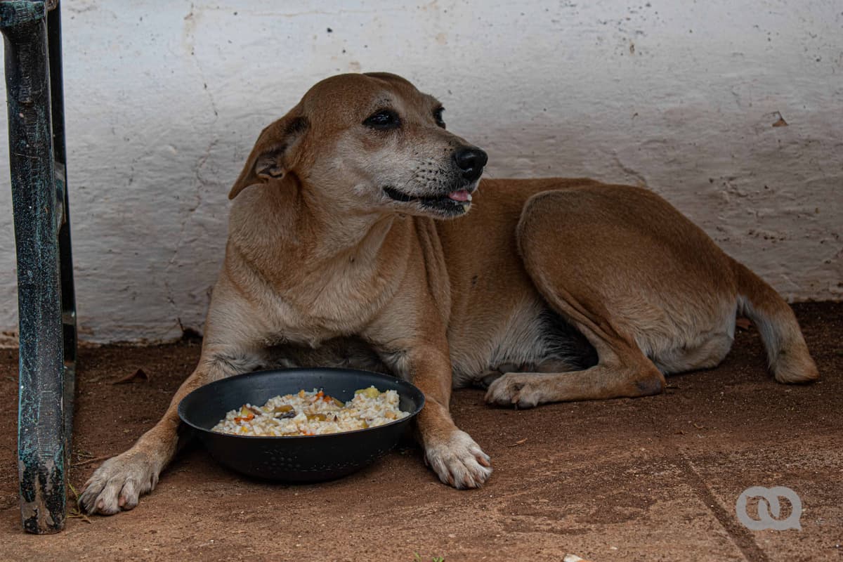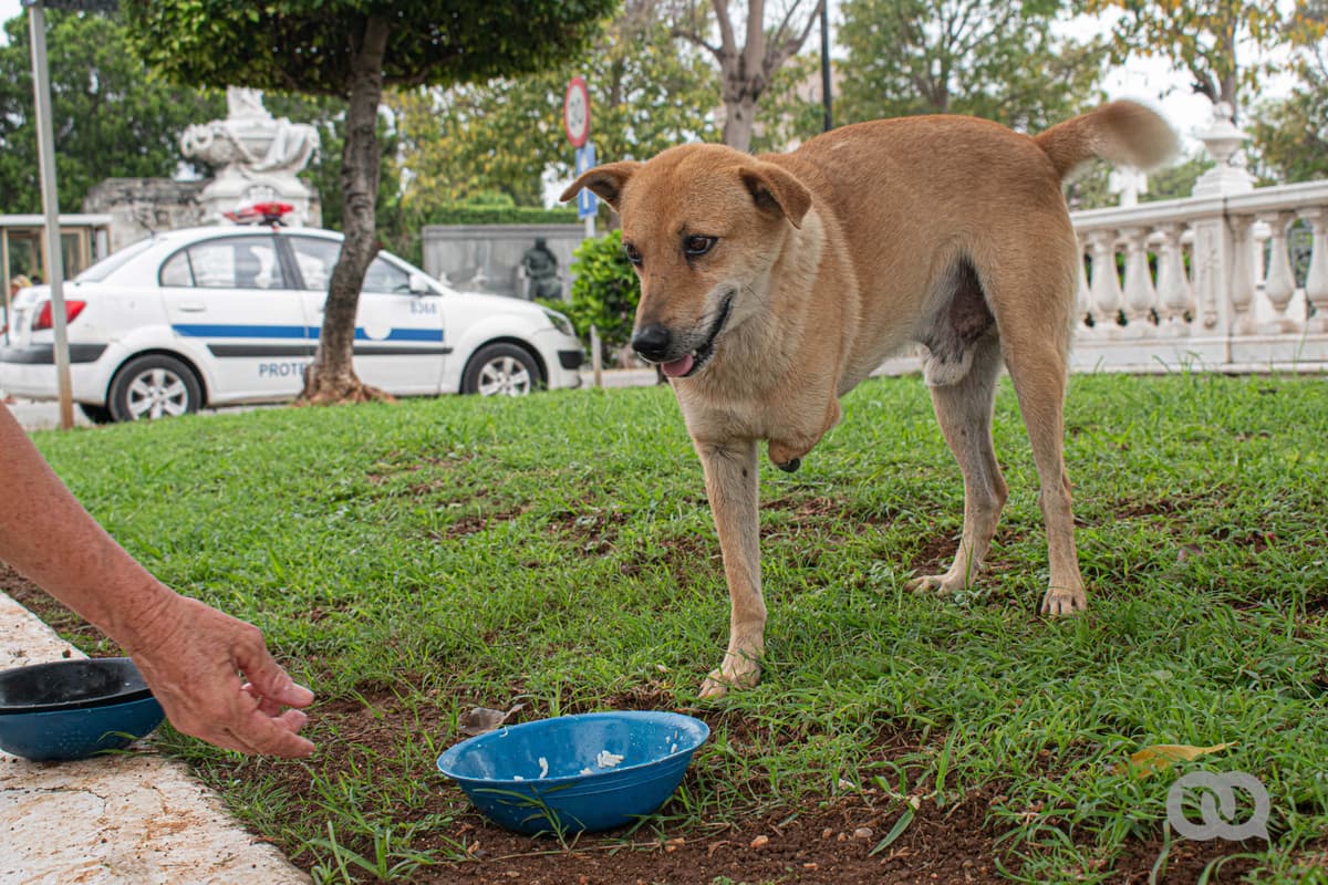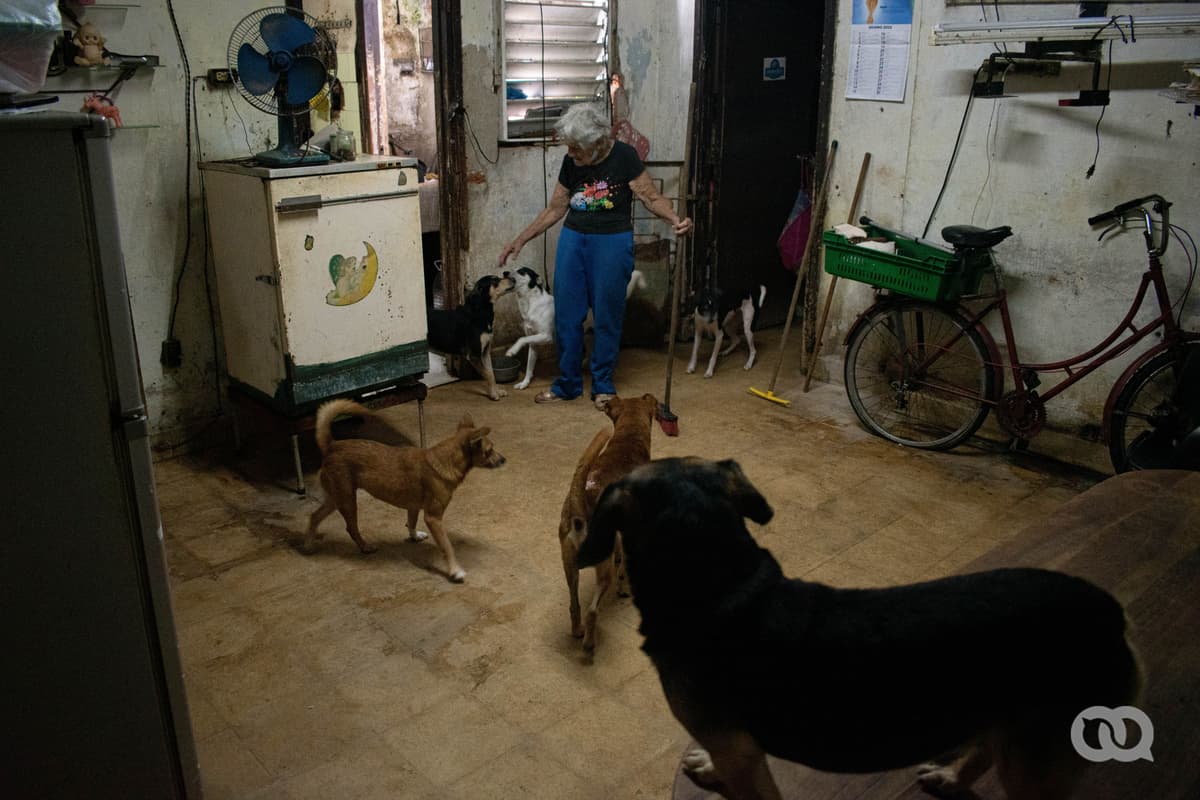 —Antes, a veces, vendían carne en Aniplant y les compraba —explica María—. Ya eso no existe. Buscaba viandas: boniato, calabaza, malanga, de todo, menos yuca y papa, que no pueden comer. También hay mucha gente que me conoce y me guarda los huesos de pollo, que yo los meto en la olla de presión, los ablando, los machaco para volverlos una pasta y se los doy. Y el arroz de mi cuota era para ellos. Mi esposo y yo nada más comíamos viandas. Él me ayudaba cantidad. Falleció hace poco. Ahora estoy sola en el apartamento y, la verdad, tengo demasiados perros, pero imagínate, a mí me da lástima cada vez que veo uno por ahí…