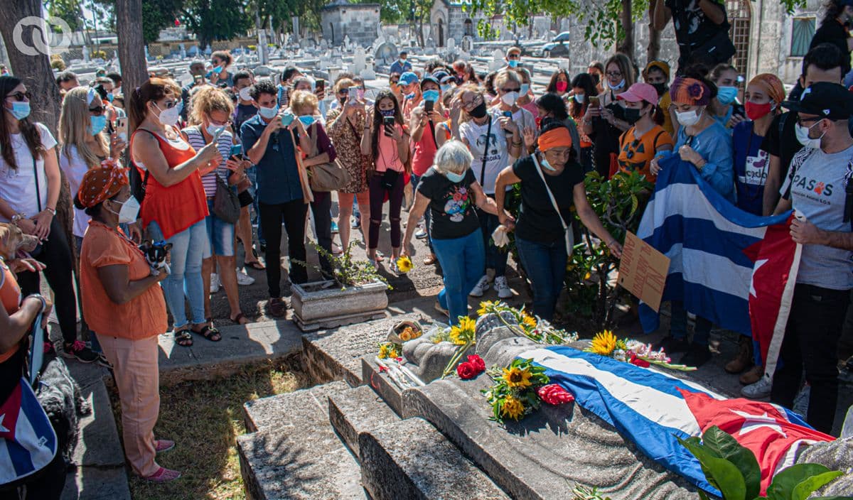 Detrás del grupo, en la otra orilla de la callejuela que separa un bloque de tumbas del otro, supervisan la actividad varios agentes de la Seguridad del Estado vestidos de civil. La peregrinación es un nuevo motivo para desplegar sus conocidos operativos de «control» popular.