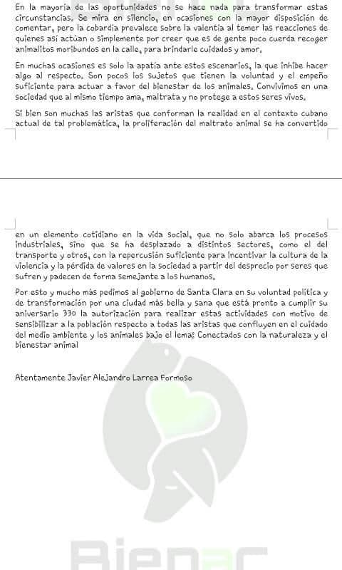 En la carta de fundamentación, además de un recorrido histórico por los momentos significativos del movimiento de protección animal en Cuba —tanto de iniciativa privada como estatal— y referencias a las muestras de maltrato que también existen en el país, detalló todas las actividades que ha pensado pueden llevarse a cabo ese día.