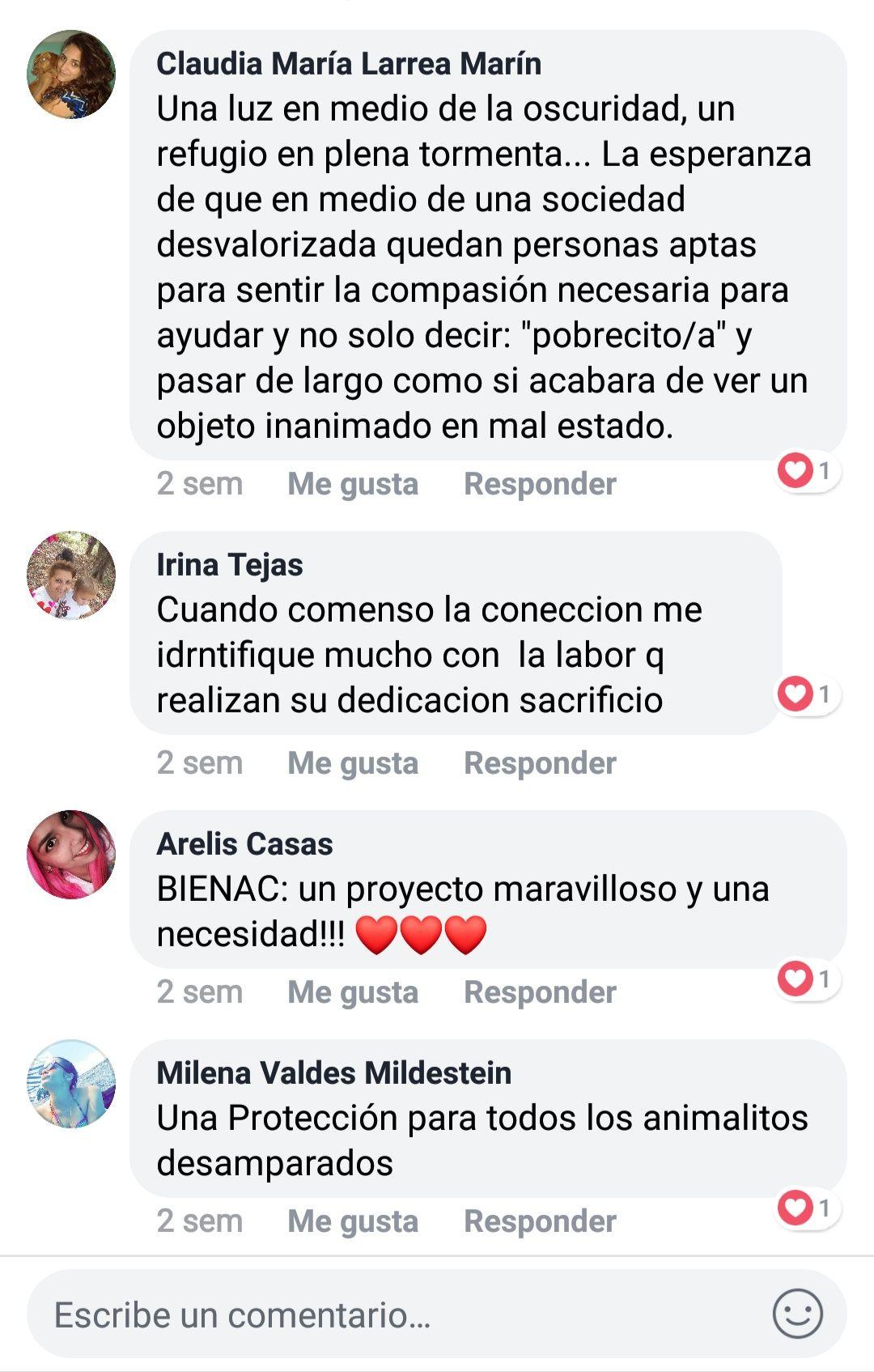En la página en Facebook de BIENAC pueden seguirse algunas de las acciones más importantes de esta iniciativa universitaria: esterilizaciones, desparasitaciones, rescate de animales, charlas educativas en escuelas, programas de adopción de animales, entre otras. Las opiniones y comentarios dan fe del trabajo que han hecho en estos meses y del reconocimiento social.