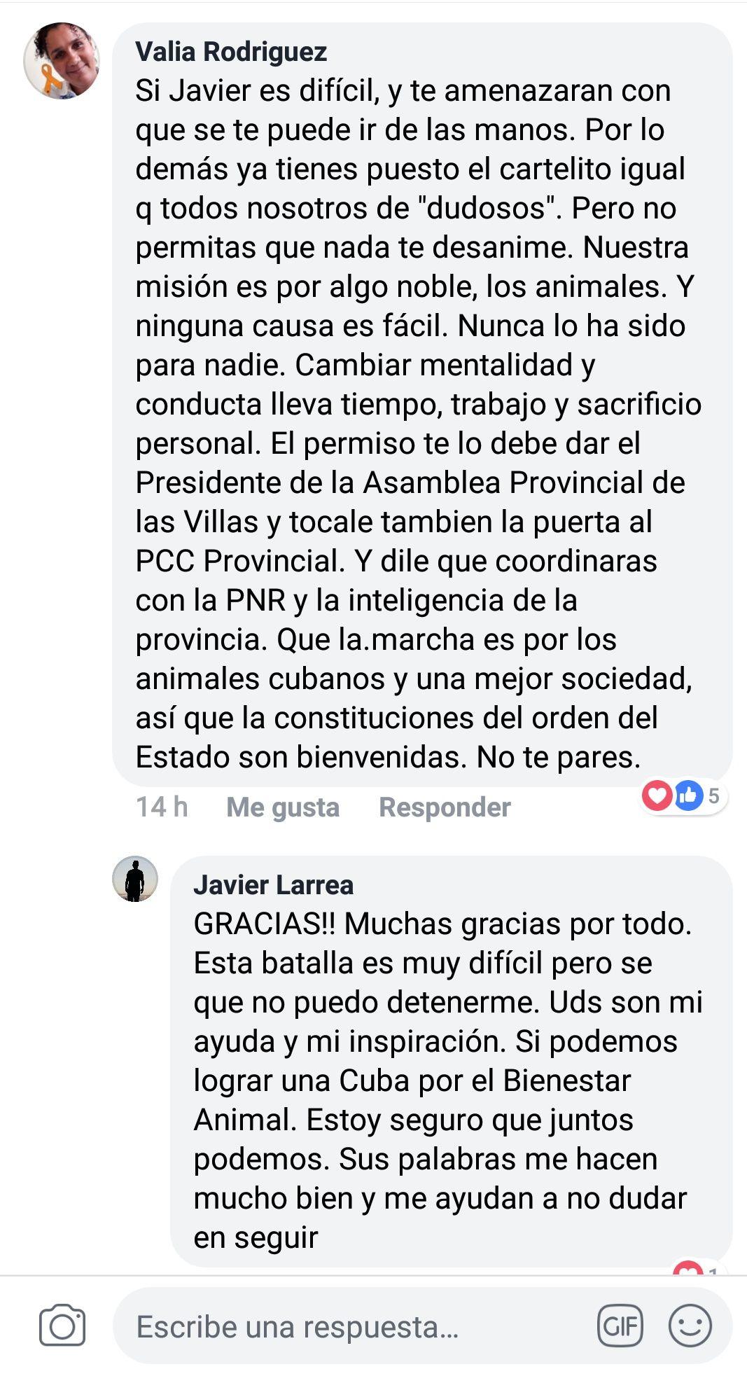 Actualización de información: El 26 de abril, durante una reunión con las autoridades en Santa Clara, a Javier Larrea le fue negada finalmente la autorización para realizar una peregrinación pacífica en contra del maltrato animal.