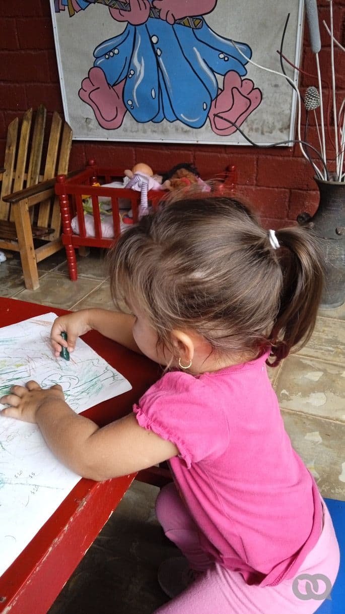 «Me hubiera gustado que interactuara con otros niños, pero en casa le enseñamos bastante durante ese tiempo. La motivábamos a dibujar, además de otras actividades», comenta Amanda. «Es una niña muy despierta para su edad, aunque también tiene sus desventajas. Con cinco años aún no es muy hábil comiendo sola, pues mi mamá la habituó a darle la comida. En un círculo hubiera aprendido a ser más independiente».