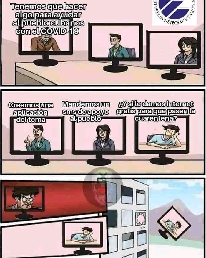 En Cuba, las medidas tardaron en llegar. En un primer momento, Etecsa se mostró bastante inflexible, incluso cuando el Gobierno indicó el teletrabajo como una forma de evitar aglomeraciones innecesarias. En ese contexto, varios usuarios reflejaron dicha realidad en memes.