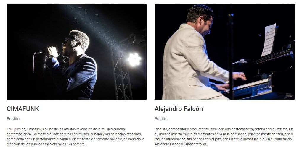 En el inicio, cuentan con perfiles de tres artistas reconocidos con inclinaciones musicales distintas: un jazzista como Alejandro Falcón; Manolito Simonet, veterano salsero; y un fenómeno del momento, como Cimafunk.