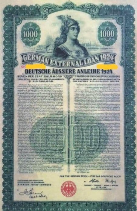 En 1930 y como parte del Plan Young, Alemania emitió un grupo de bonos (conocidos como Young Bonds) que cubrían préstamos hechos por acreedores internacionales para impulsar la reparación del país luego del fin de la Primera Guerra Mundial. Tras el ascenso al poder de Adolf Hitler (1933), el Gobierno del Partido Nacional Socialista decidió dejar de pagar los bonos y los llamó «ilegítimos».