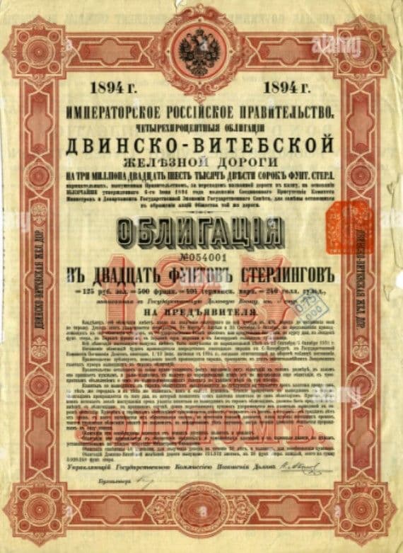Después de la Revolución de Octubre de 1917, los bolcheviques decidieron dejar de pagar los bonos emitidos por el imperio zarista. En aquel momento el nuevo Gobierno soviético declaró inválidos los bonos porque habían sido emitidos por una Administración —valga la redundancia— «ilegítima».