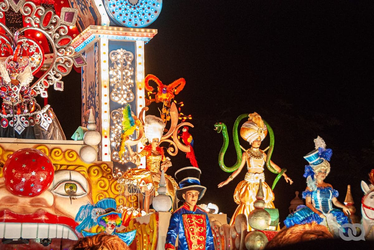 La carroza de San Salvador del 2012, inspirada en un espectáculo circense, logró con trabajo la maniobra de traslación tradicional. Foto: Sadiel Mederos.