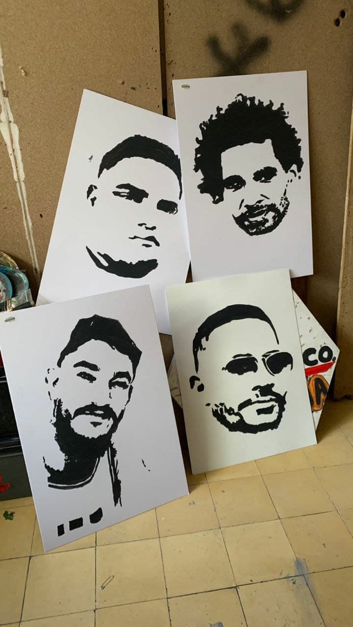 Carteles para exigir la liberación de los presos políticos en Cuba (De izquierda a derecha Esteban Rodríguez, Luis Manuel Otero, Andy García y Maykel Osorbo)