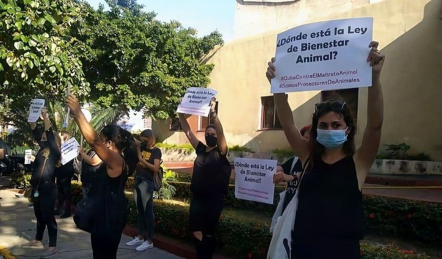 El 19 de febrero de 2021 una veintena de personas protestó frente al Ministerio de la Agricultura, en La Habana. Llevaban ropa negra y carteles que exigían la aprobación, de una vez y por todas, de la Ley de Bienestar Animal, pospuesta dentro del cronograma legislativo desde noviembre anterior.