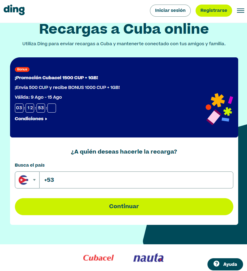 El primer sitio que menciona en su lista y que es un socio fundamental del monopolio de las comunicaciones en Cuba es Ding, uno de los proveedores mundiales líderes en recargas internacionales.