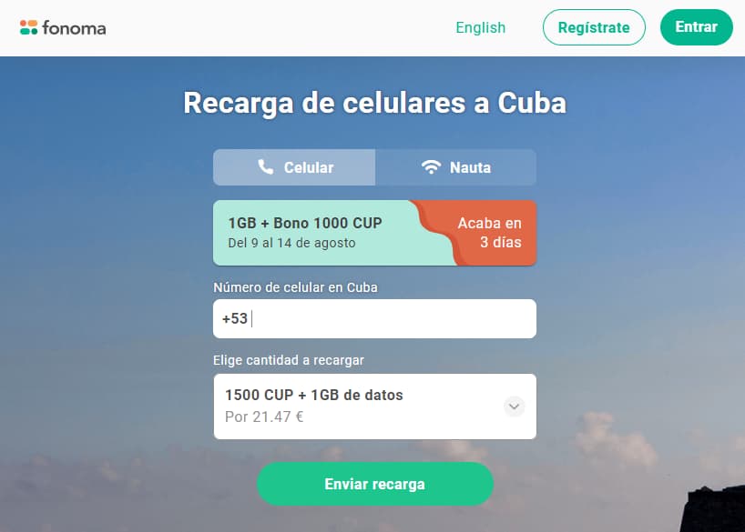 Aclaración: existen dos tipos de recargas para Cuba, la recarga Cubacel (recarga de saldo móvil) y la recarga de cuentas nauta, para la navegación en Internet a través de puntos de acceso wifi.