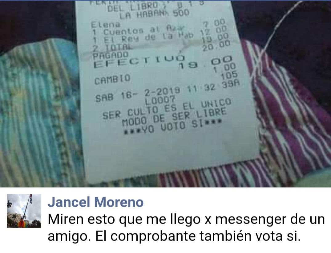 Varios usuarios de Facebook han criticado cómo la campaña por el “YoVotoSí”, en días previos al referendo constitucional, ocupó la primera plana hasta en los comprobantes de venta de la Feria Internacional del Libro de La Habana.