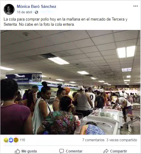 Durante las semanas de desaparición de pollo, aceite y otros muchos productos, un número creciente de usuarios —algunos amparándose en el tuit de la ministra— llenaron las redes sociales con imágenes de anaqueles vacíos, tiendas en mal estado constructivo, colas inmensas y trifulcas.
