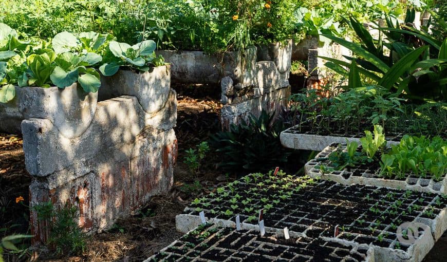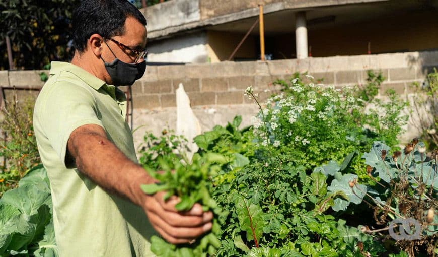 A la sombra de los canteros, Ricardo pone material orgánico como hojas secas que luego incorpora a la tierra. Foto: Ernesto Verdecia.