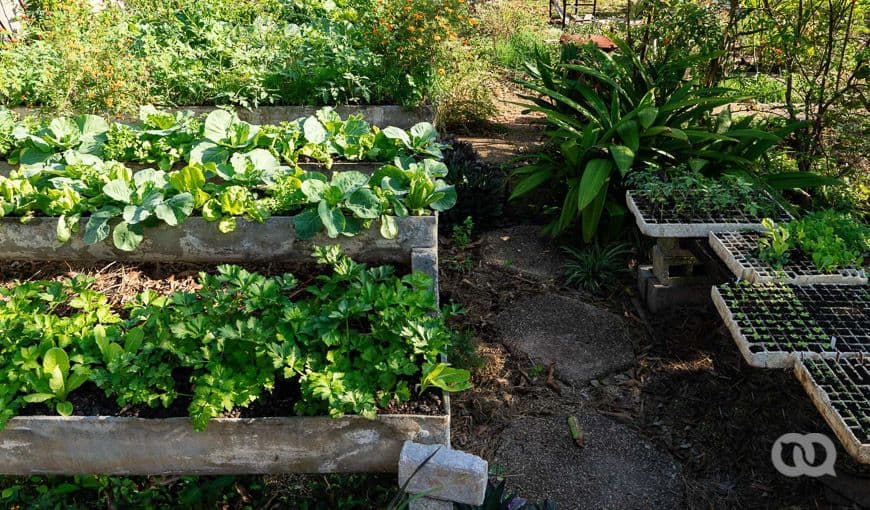 No es poco lo que tiene Ricardo pero sobre todo destaca el aprovechamiento del espacio, la dedicación y el conocimiento que le lleva a tener unos canteros de apenas 30 cm de ancho rebosantes de vida. Con algunos cultivos tiene mucho más de lo que puede consumir y termina, casi siempre, regalándolo a familiares y amigos.