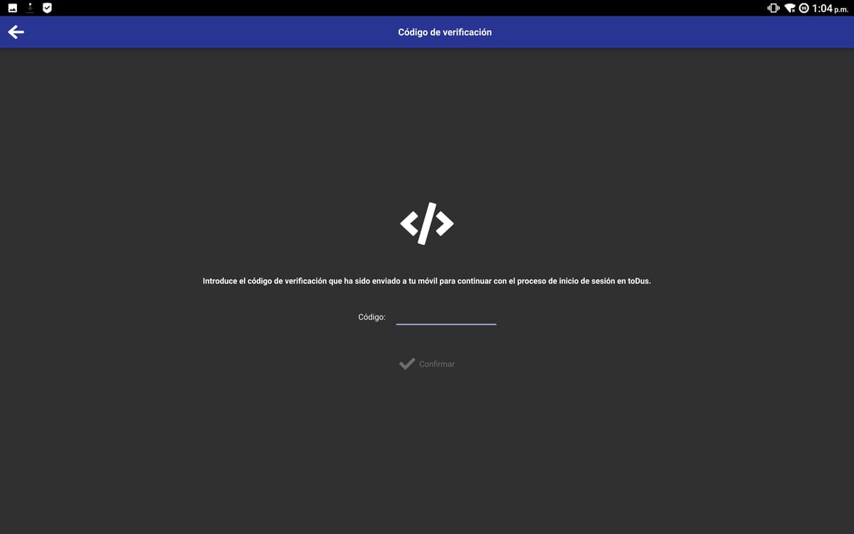 Posteriormente, escribimos el código que toDus envió a nuestro móvil.