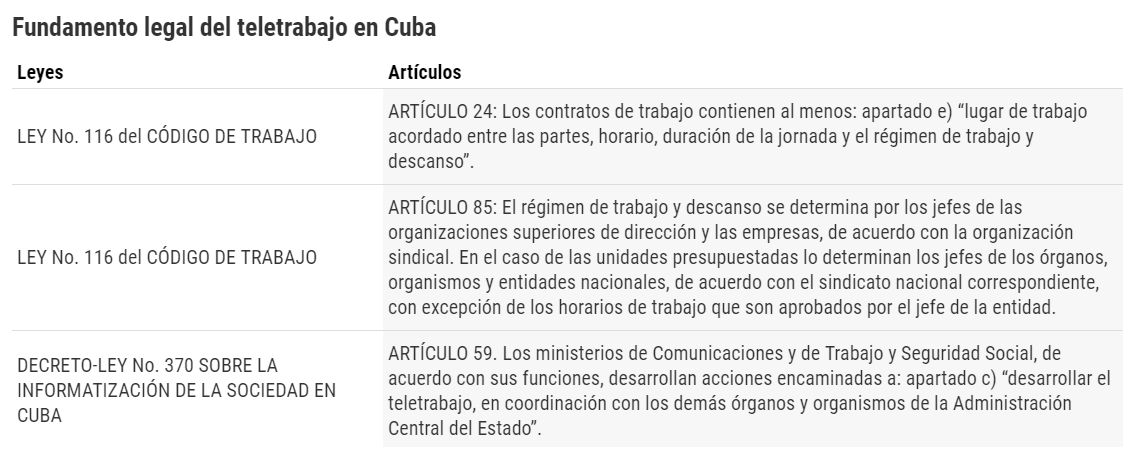 Fuente: Ley 116 del Código de Trabajo y Decreto Ley 370 “Sobre la Informatización de la Sociedad en Cuba”.