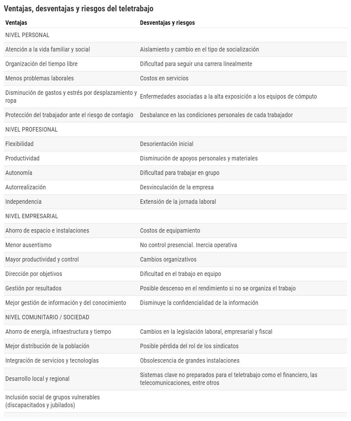 De acuerdo con la Comisión Económica para América Latina y el Caribe (CEPAL), las estructuras de los mercados laborales, las estructuras productivas y los niveles de informalidad juegan un papel esencial en el teletrabajo.