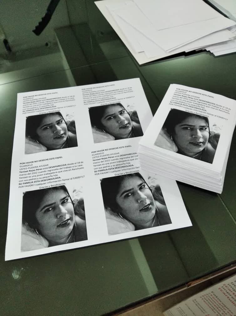 El 18 de marzo de 2022 desapareció en Ranchuelo, Villa Clara, la joven Yeniset Rojas Pérez cuando salía desde su centro de trabajo hacia la casa. Luego de 10 meses en los que no dejaron de denunciar su desaparición, el 23 de enero de 2023 la familia informó de su muerte, sin ofrecer más detalles sobre el caso.