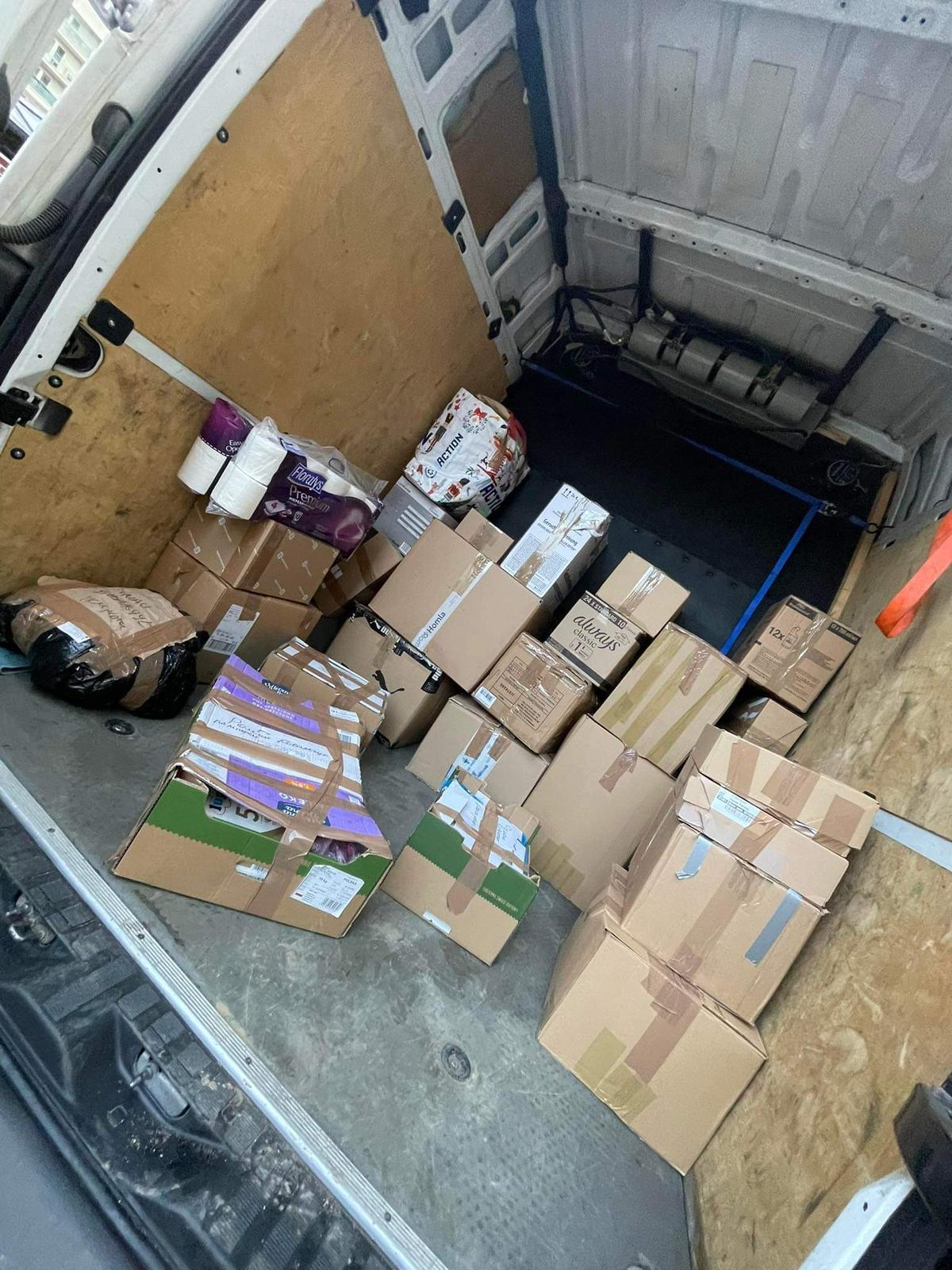 Donaciones reunidas para enviar a Ucrania. Foto: Cortesía de la entrevistada.