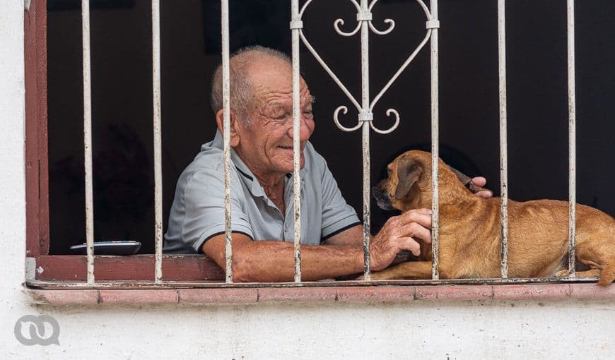 Siempre que se camina el bulevar y rebasa el río Bélico, subiendo la loma de la calle Independencia, se puede encontrar este viejo perrito echado en el alféizar. Por primera vez, vi a su dueño acompañándolo.