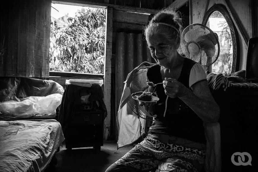 Ella está pendiente de las nubes oscuras. Extiende cubiertas de nailon, dispone cacerolas y vasijas sobre muebles y piso de cemento pulido, por si comenzara a llover. Es apenas media mañana, pero así se quedarán el resto del día. Bebe el último sorbo de café hecho al amanecer. Un pan, normado al día por la libreta de abastecimiento, fue su desayuno, junto a unos huevos revueltos y agua con azúcar prieta. Por suerte, tiene cinco gallinas criollas que ponen unos huevos muy colorados. “Tal vez por comer tanto cundiamor”, opina.