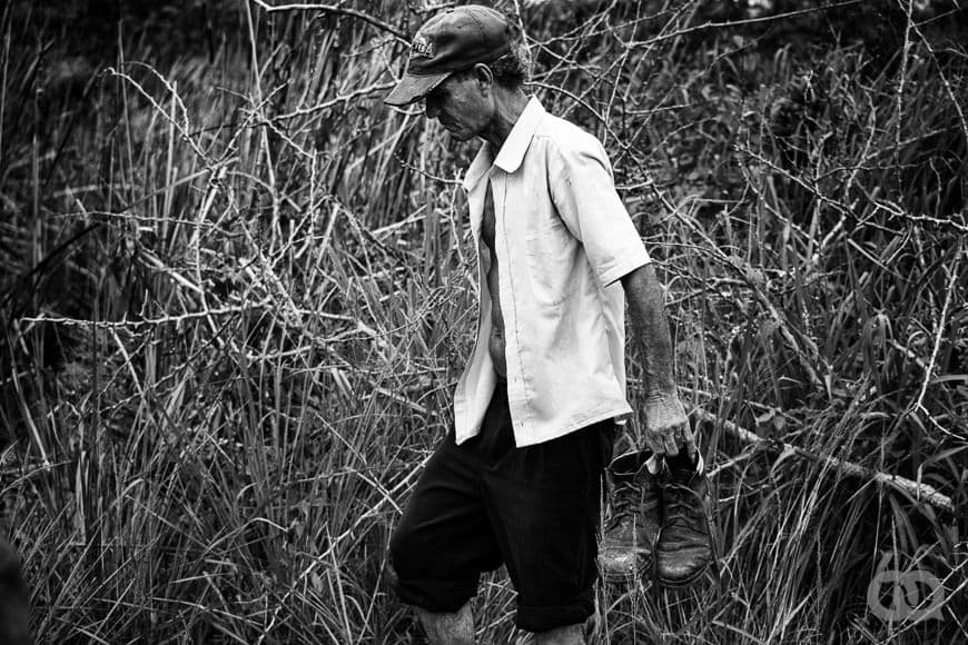 Desde que Papelito descubrió que de un guatacazo salen tres o cuatro lombrices de tierra en el patio de un vecino, inicia su expedición de pesca por el camino contrario. Foto: Sadiel Mederos