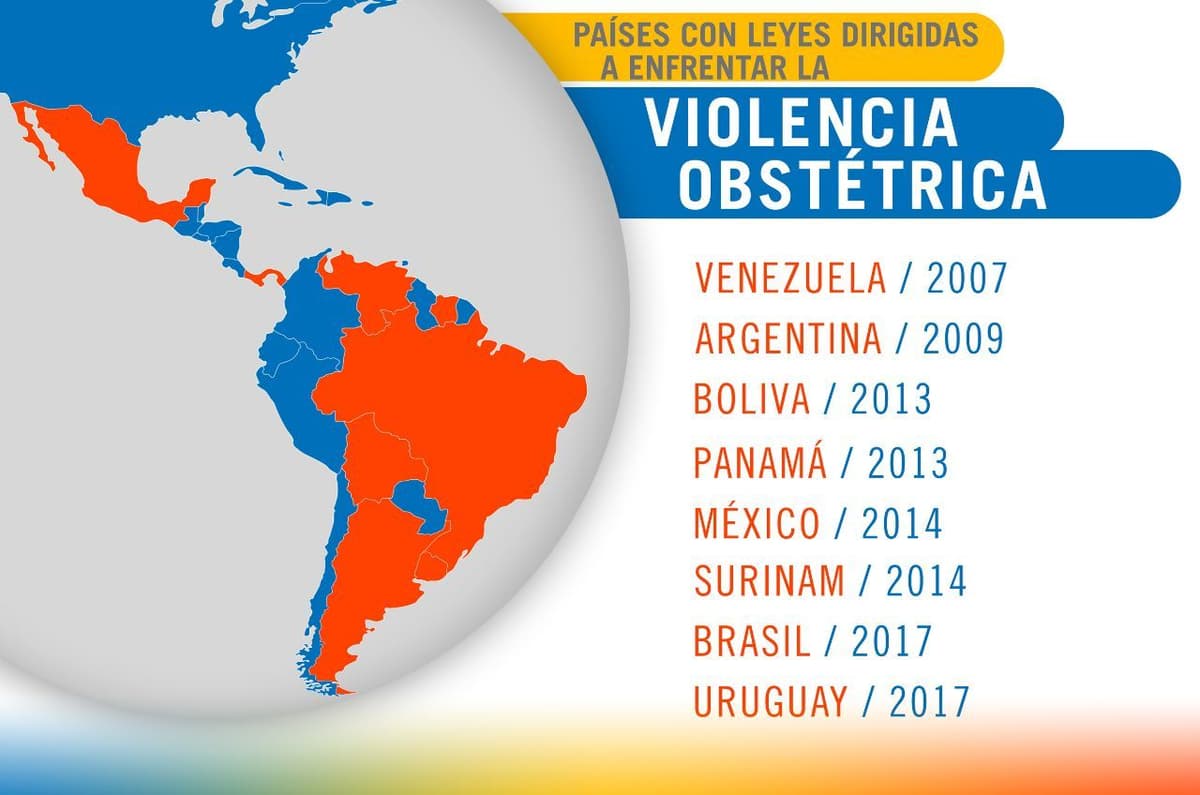En 2007 Venezuela se convirtió en el primer país del mundo en impulsar una legislación dirigida a enfrentar la violencia obstétrica. Le siguieron otros países del continente como Argentina (2009), Panamá (2013), México (2014), Suriname (2014), Brasil (2017) y Uruguay (2017). Bolivia, por su parte, promulgó una ley sobre la violencia contra los derechos reproductivos que incluye también el aborto espontáneo y la lactancia materna.